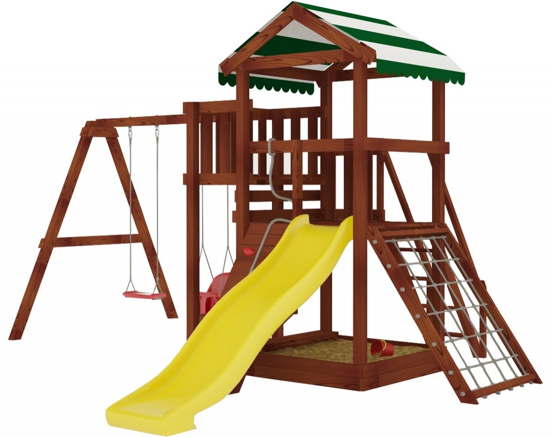 Центром площадки является игровая башня с высотой платформы 1200 мм и крышей, покрытой тканью или деревом. Забраться на башню можно несколькими способами: