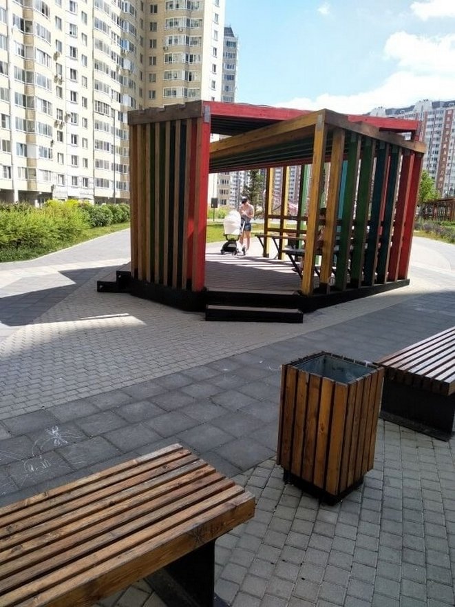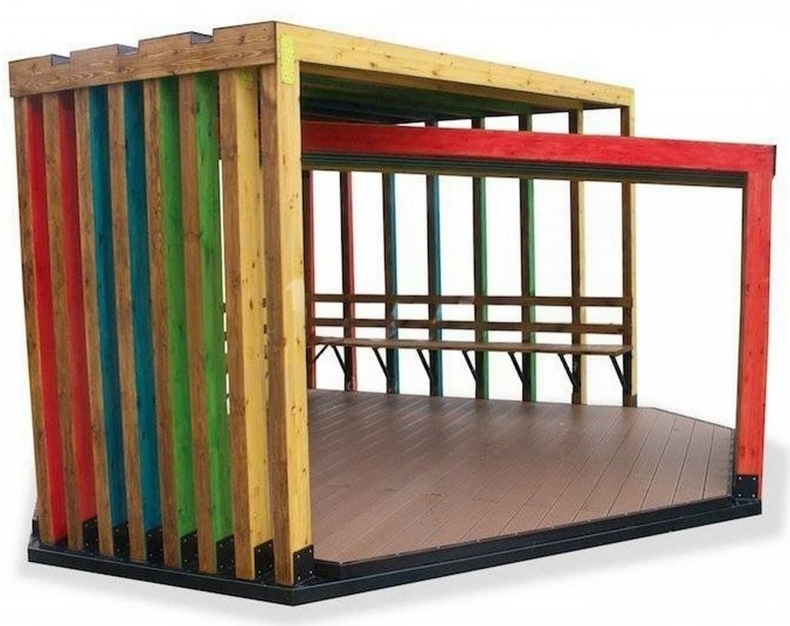 Деревянные части: Брус из хвойных пород древесины. Покрытие - атмосферостойкая лессирующая акриловая пропитка с лаком. Стандартные цвета: Палисандр, Махагон, Тик.